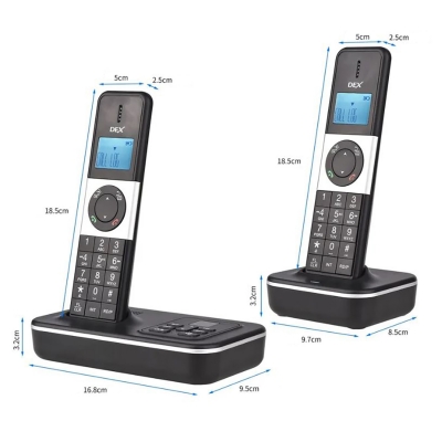 4. Базовый блок оснащен двухстрочным ЖК-дисплеем, может воспроизводить и записывать сообщения. Автоответчик может записывать до 60 минут.